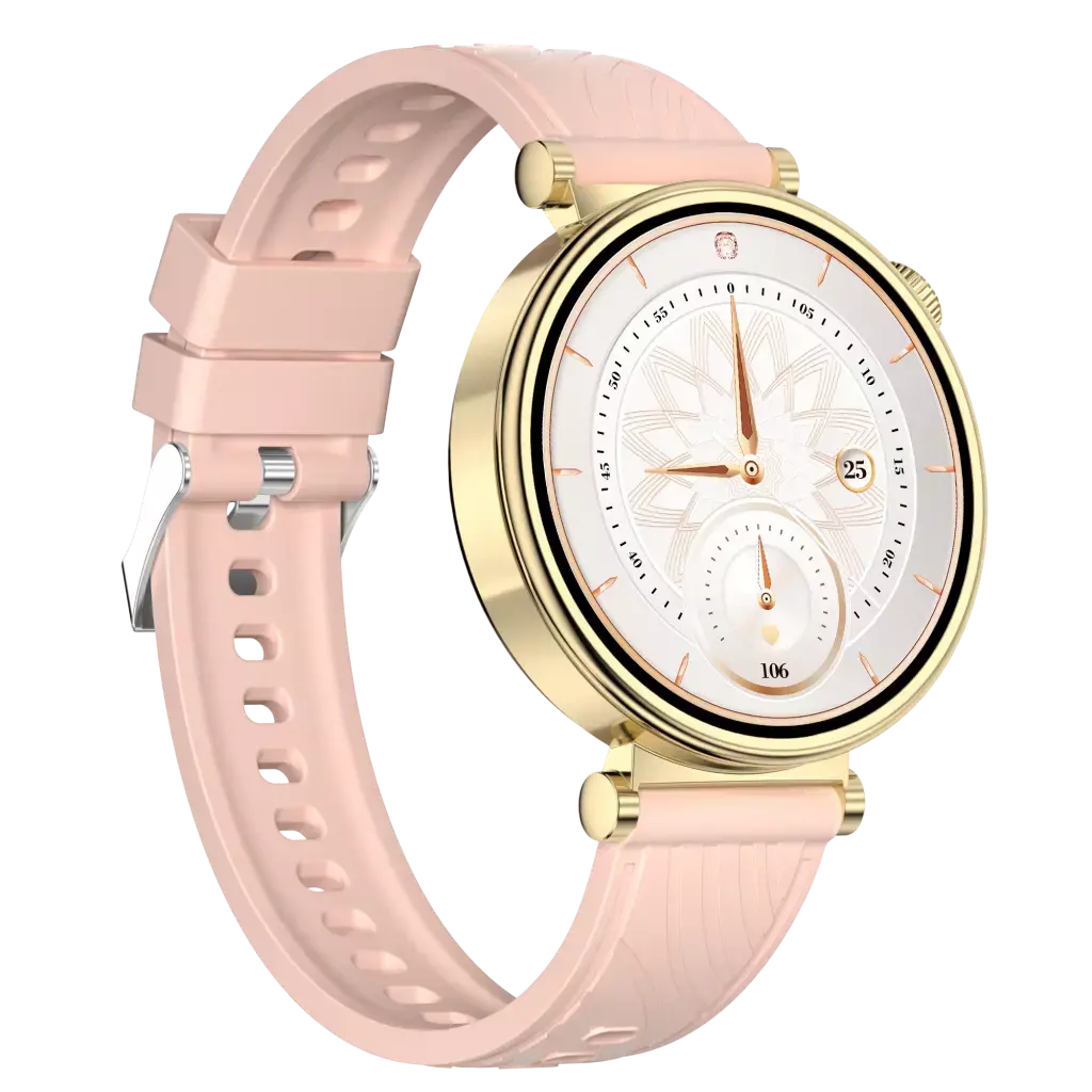 Descubra o Smartwatch Am23, um acessório pensado especialmente para quem valoriza estilo, modernidade e funcionalidades completas no pulso. Com uma tela AMOLED HD de 1.32” e design sofisticado que realça o pulso feminino, este relógio inteligente é o companheiro ideal para acompanhar sua rotina com muita classe.
